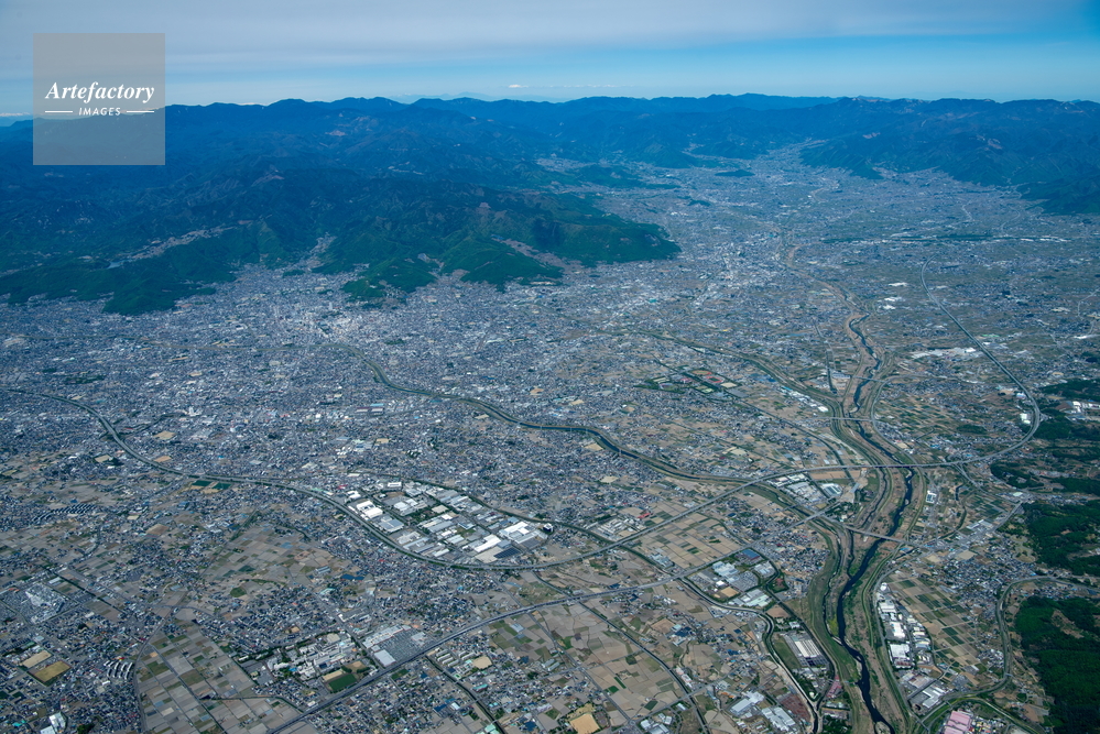 | 作品タイトル | 甲府盆地(笛吹川,荒川合流地周辺より甲府市街地方面) | モデルリリース | なし | |