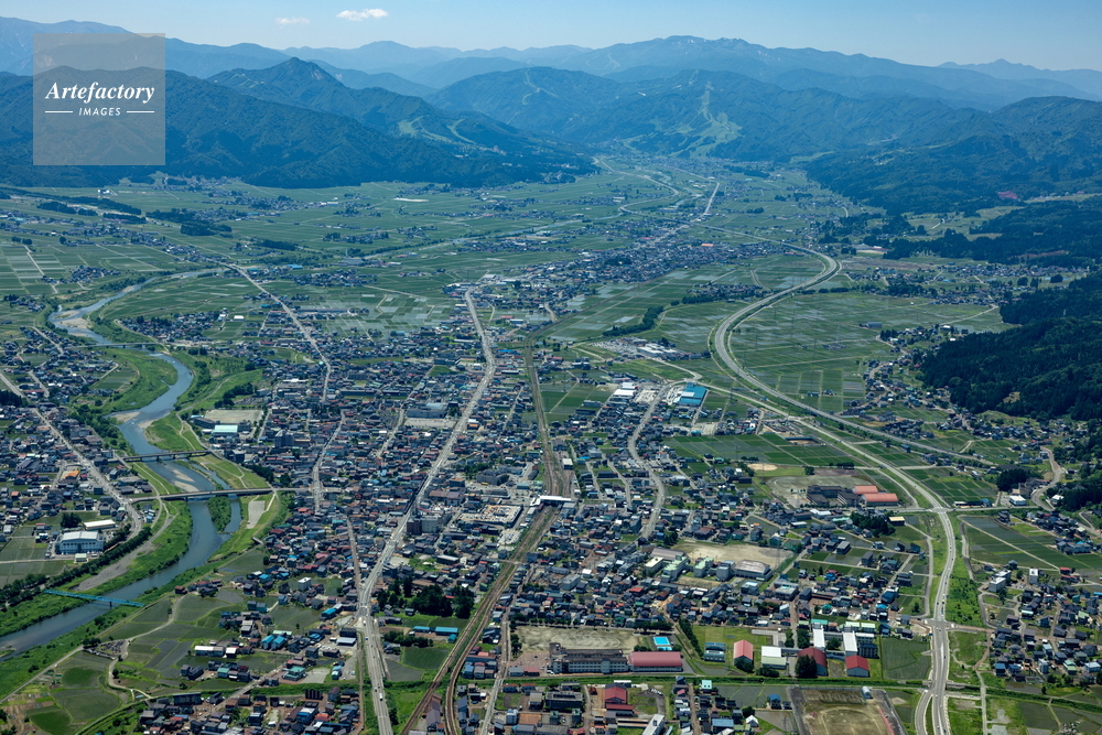 | 作品タイトル | 六日町駅と街並みより石打方面(魚沼盆地) | モデルリリース | なし | |