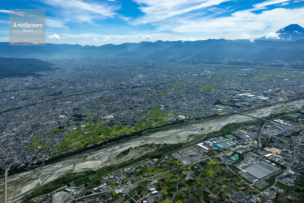 | 作品タイトル | 甲府盆地(釜無川手前でより甲府市街地と富士山) | モデルリリース | なし | |
