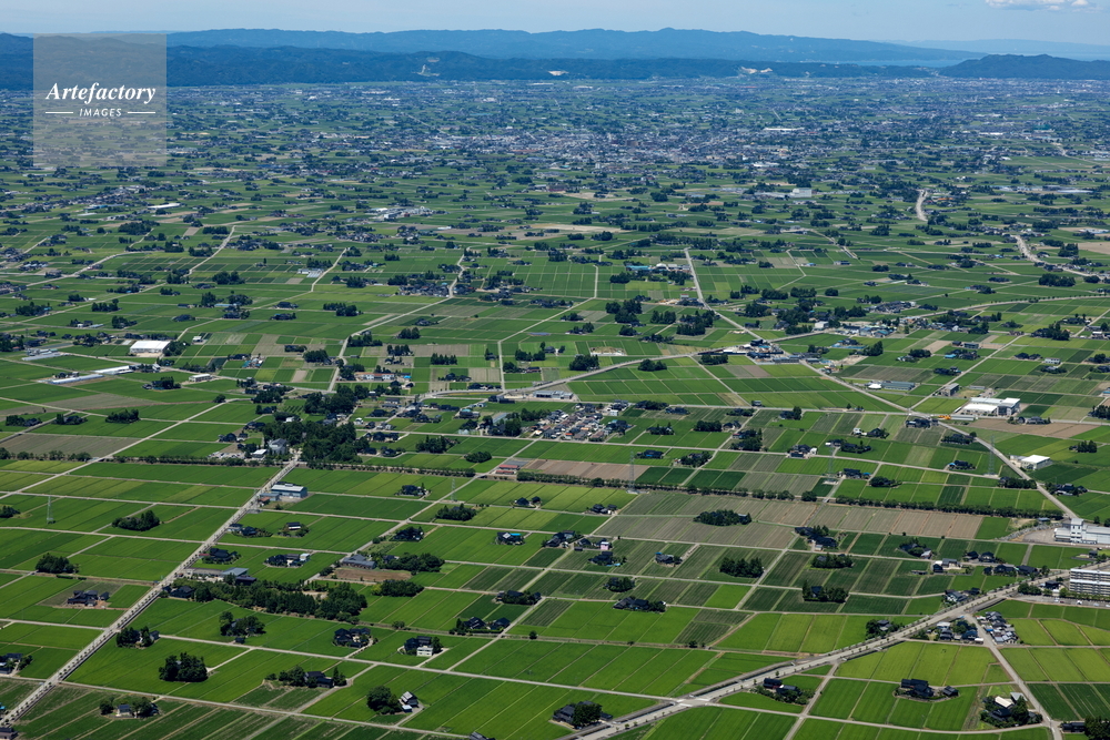 | 作品タイトル | 砺波平野の散村風景(高瀬地区より砺波の町方面) | モデルリリース | なし | |