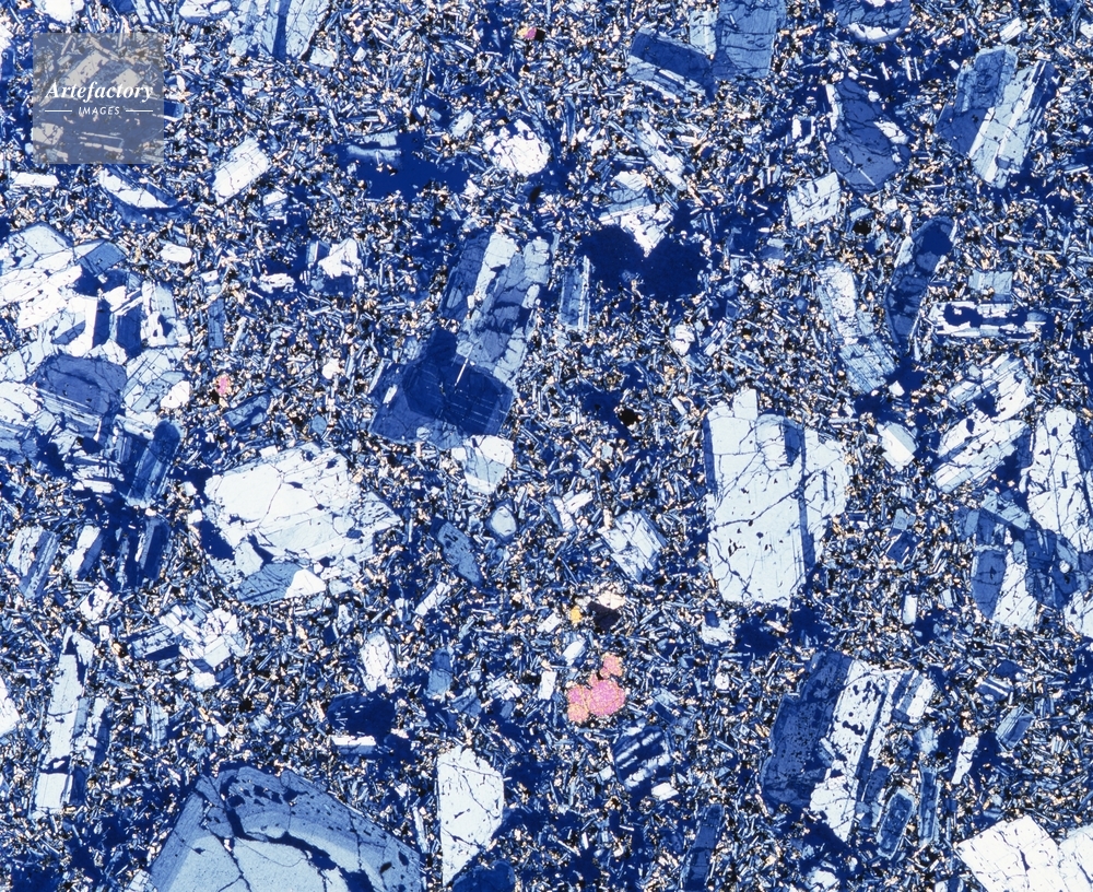| 作品タイトル | 灰長石巨斑晶含有橄欖石玄武岩〔直交〕 | モデルリリース | なし | |