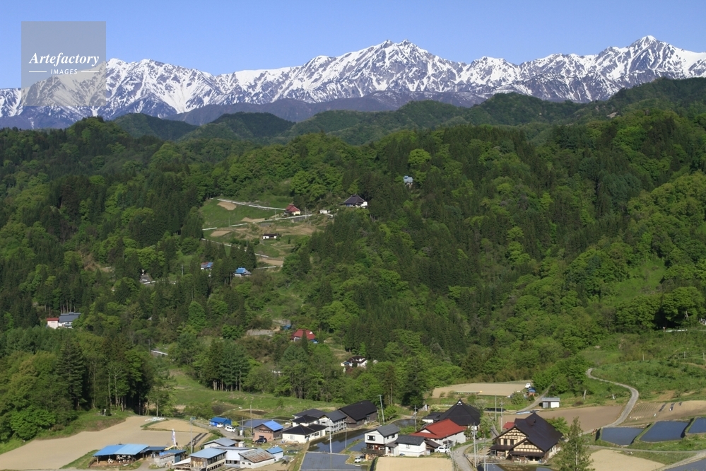 | 作品タイトル | 新緑の農村と北アルプス | モデルリリース | なし | |