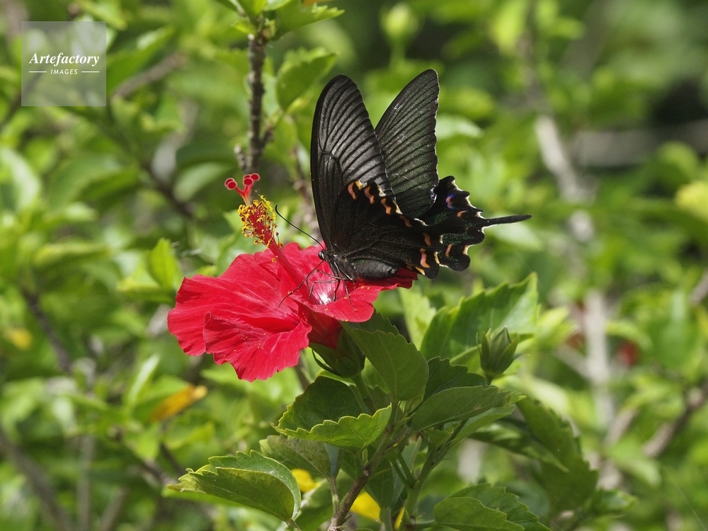| 作品タイトル | ハイビスカスで吸蜜するカラスアゲハ | モデルリリース | なし | |