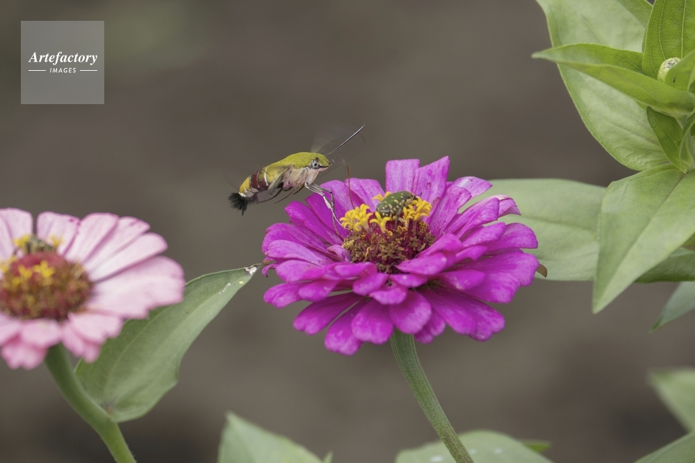 | 作品タイトル | ヒャクニチソウで吸蜜するオオスカシバ | モデルリリース | なし | |