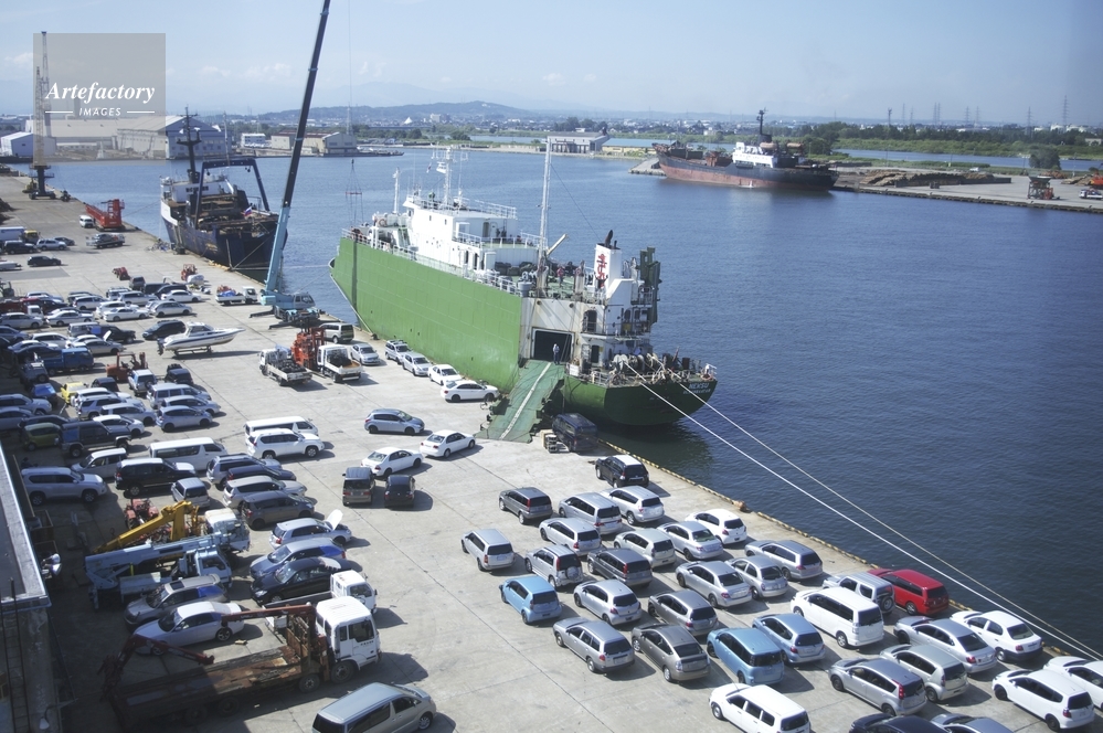 | 作品タイトル | ロシアに輸出する中古車 富山港展望台より | モデルリリース | なし | |