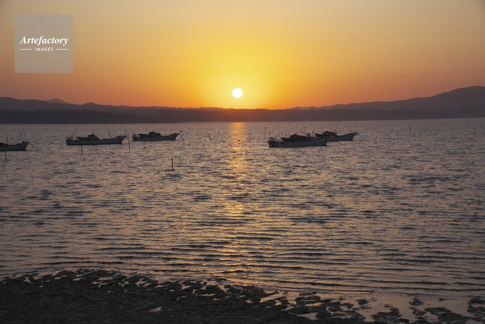 | 作品タイトル | 十三湖の日の出と漁船 | モデルリリース | なし | |