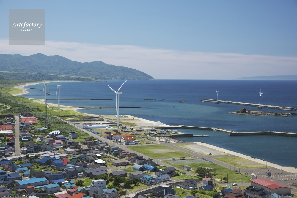 | 作品タイトル | せたな町市街地と奥尻島と風力発電 | モデルリリース | なし | |