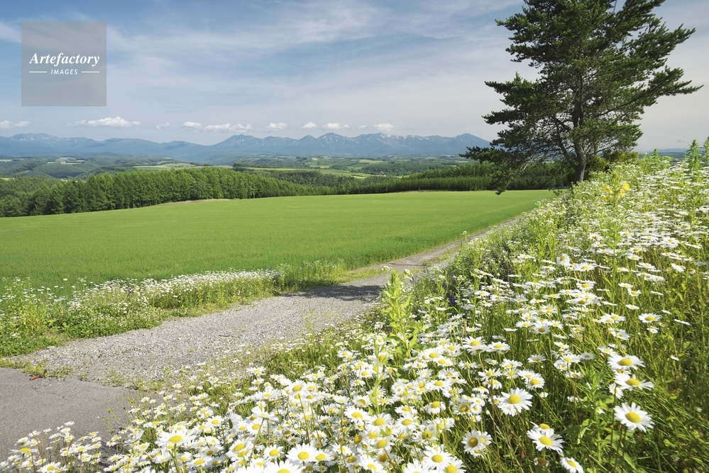 | 作品タイトル | 十勝岳連峰と白い花と道 | モデルリリース | なし | |