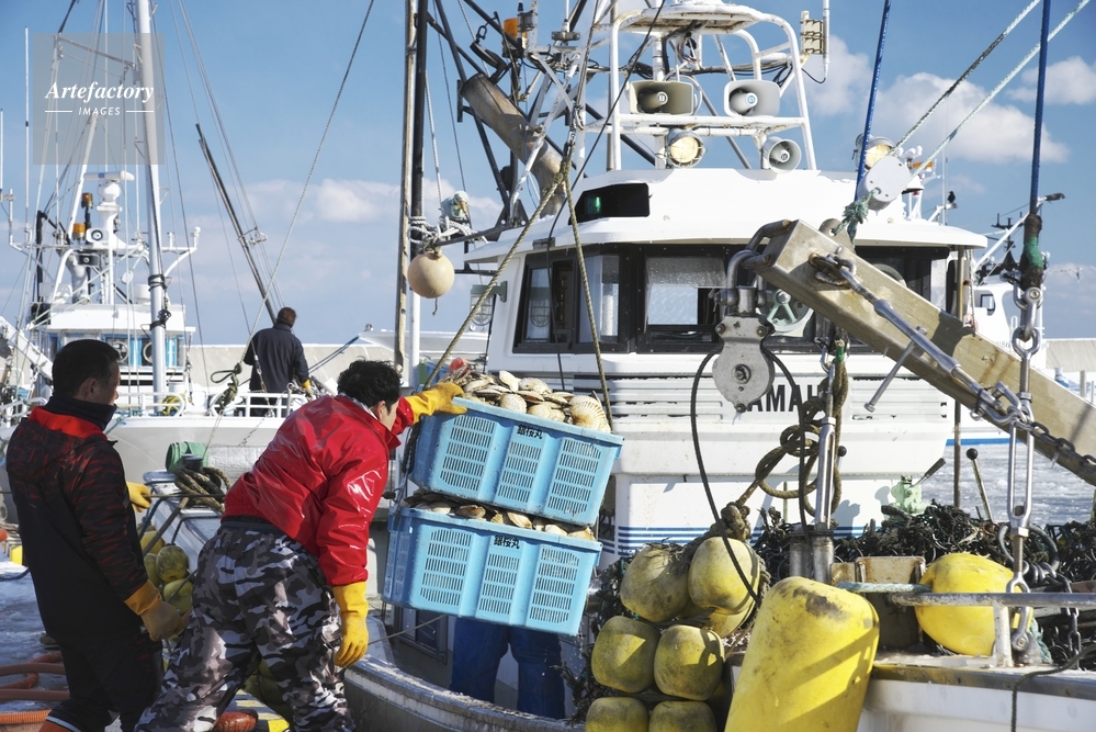 | 作品タイトル | 尾岱沼漁港のホタテの荷揚げ | モデルリリース | なし | |