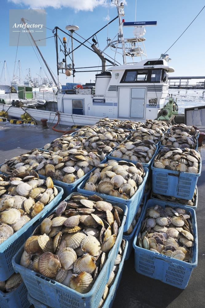 | 作品タイトル | 尾岱沼漁港のホタテの荷揚げ | モデルリリース | なし | |