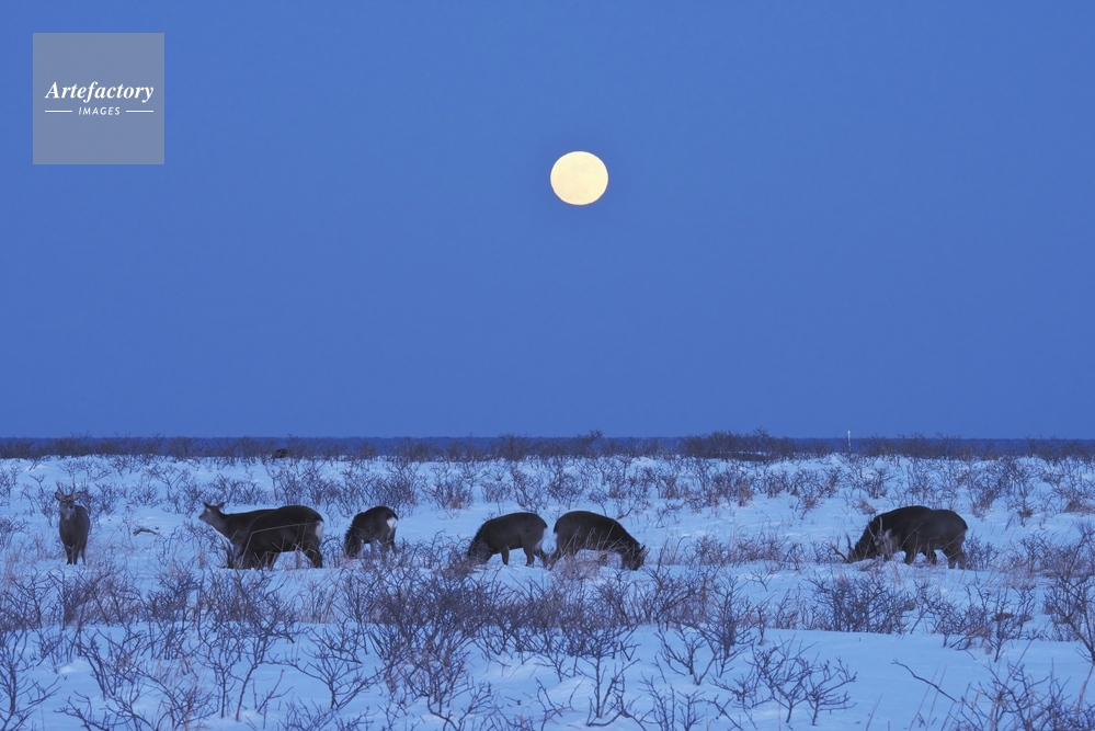 作品タイトル     満月とエゾシカ 夕景 モデルリリース なし