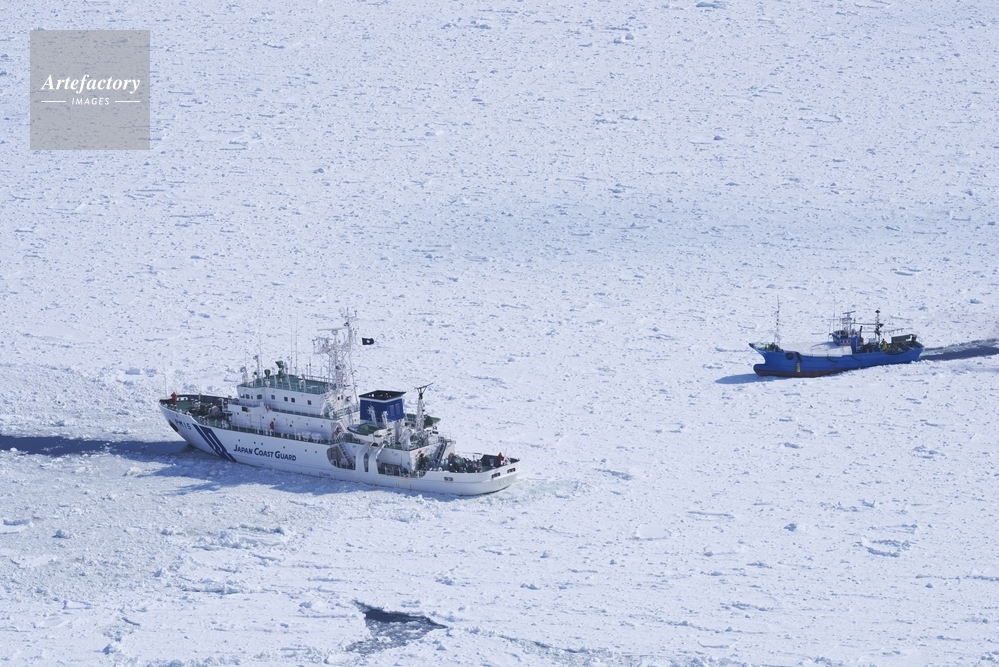 | 作品タイトル | 流氷に閉じ込められたスケソウダラ漁船と巡視船てしお | モデルリリース | なし | |