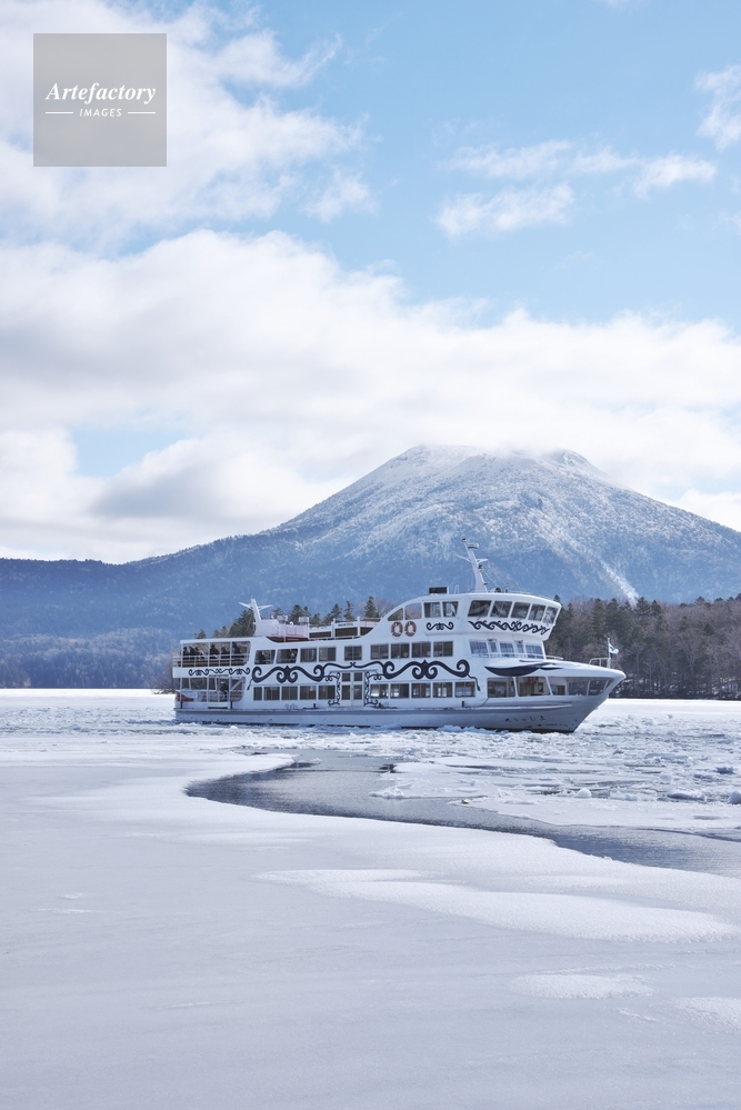 | 作品タイトル | 阿寒湖の砕氷帯観光遊覧船と雄阿寒岳 | モデルリリース | なし | |