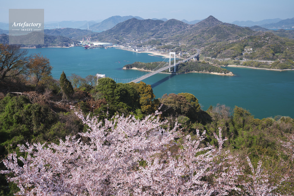 | 作品タイトル | カレイ山展望公園の桜と伯方島 | モデルリリース | なし | |
