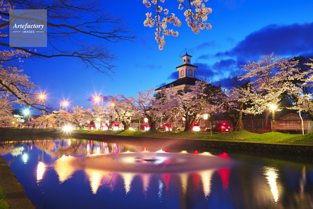 | 作品タイトル | 鶴岡公園の桜と致道博物館の夜景 | モデルリリース | なし | |