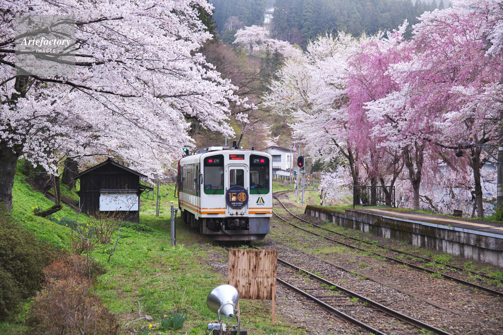 | 作品タイトル | 湯野上温泉駅と桜と列車 | モデルリリース | なし | |