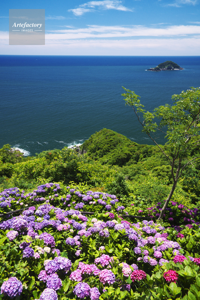 | 作品タイトル | 桃源郷岬のアジサイと日向灘 | モデルリリース | なし | |
