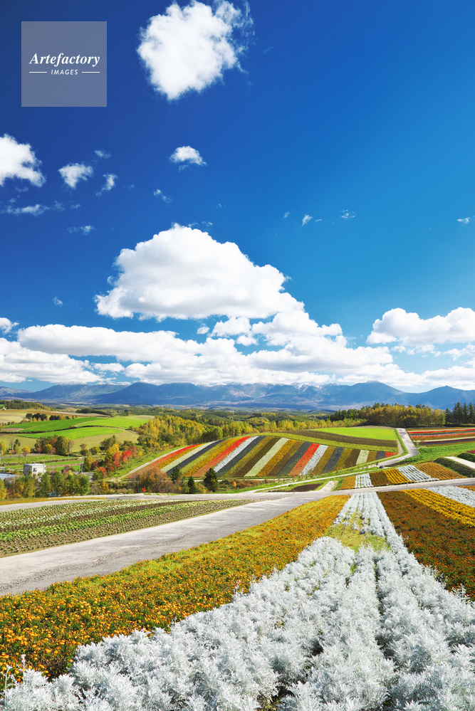 | 作品タイトル | 十勝岳連峰と四季彩の丘の秋 | モデルリリース | なし | |