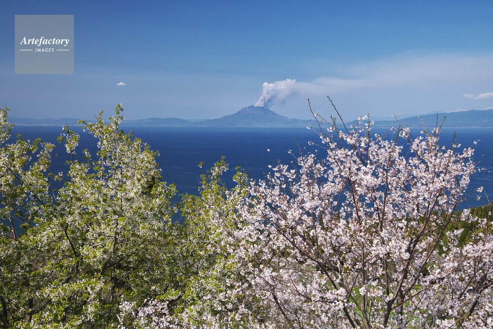 | 作品タイトル | 魚見岳自然公園の桜と桜島の噴煙 | モデルリリース | なし | |