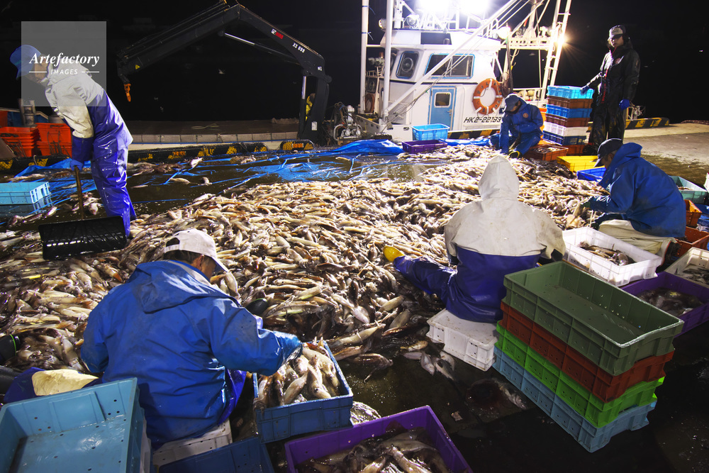| 作品タイトル | 羅臼港のイカ荷揚げとイカ選別 | モデルリリース | なし | |