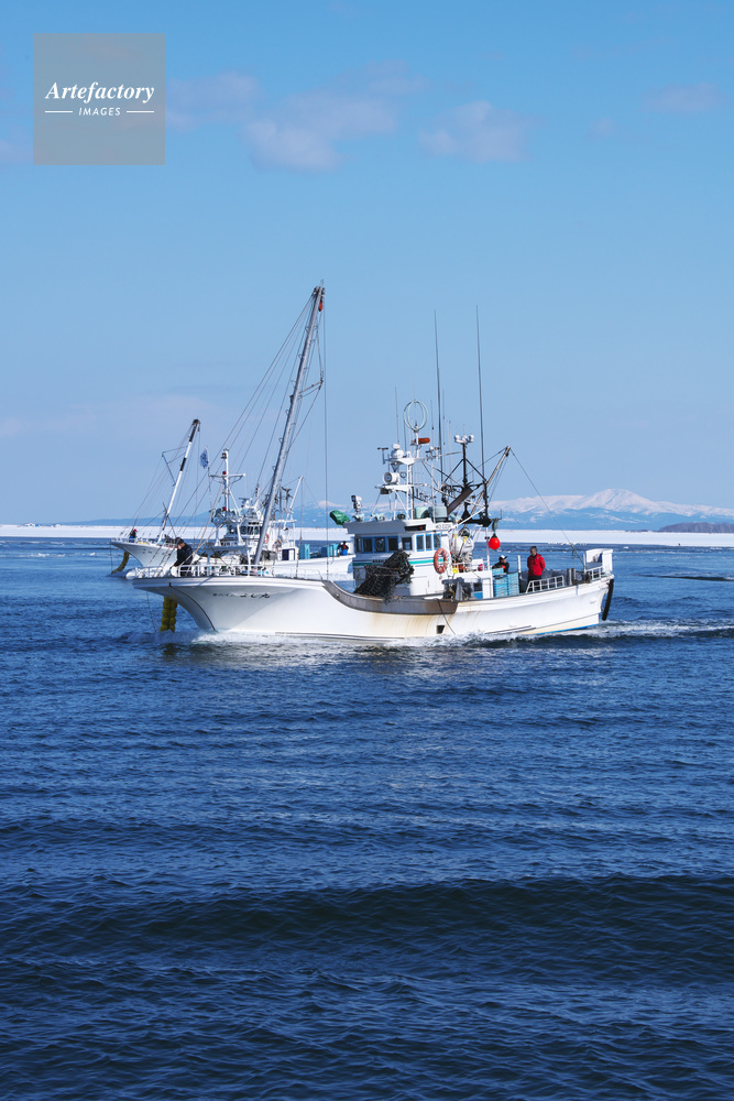 | 作品タイトル | 尾岱沼漁港に帰港するホタテ漁船 | モデルリリース | なし | |