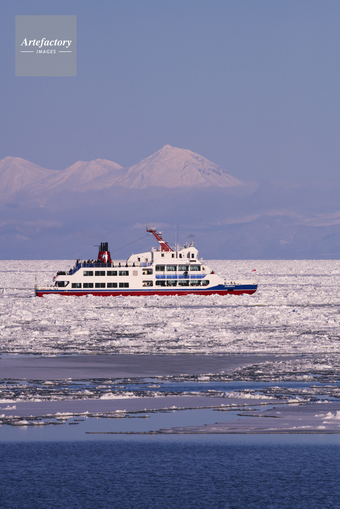 | 作品タイトル | 流氷砕氷船おーろらのサンセットクルーズと知床連山と流氷 | モデルリリース | なし | |