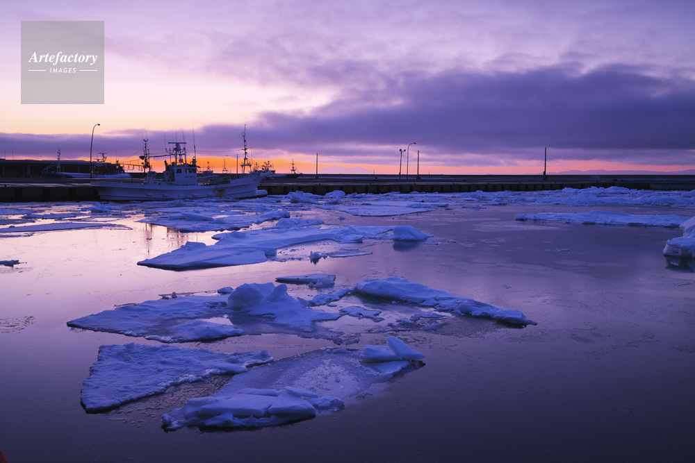 | 作品タイトル | 羅臼港の朝と流氷 | モデルリリース | なし | |