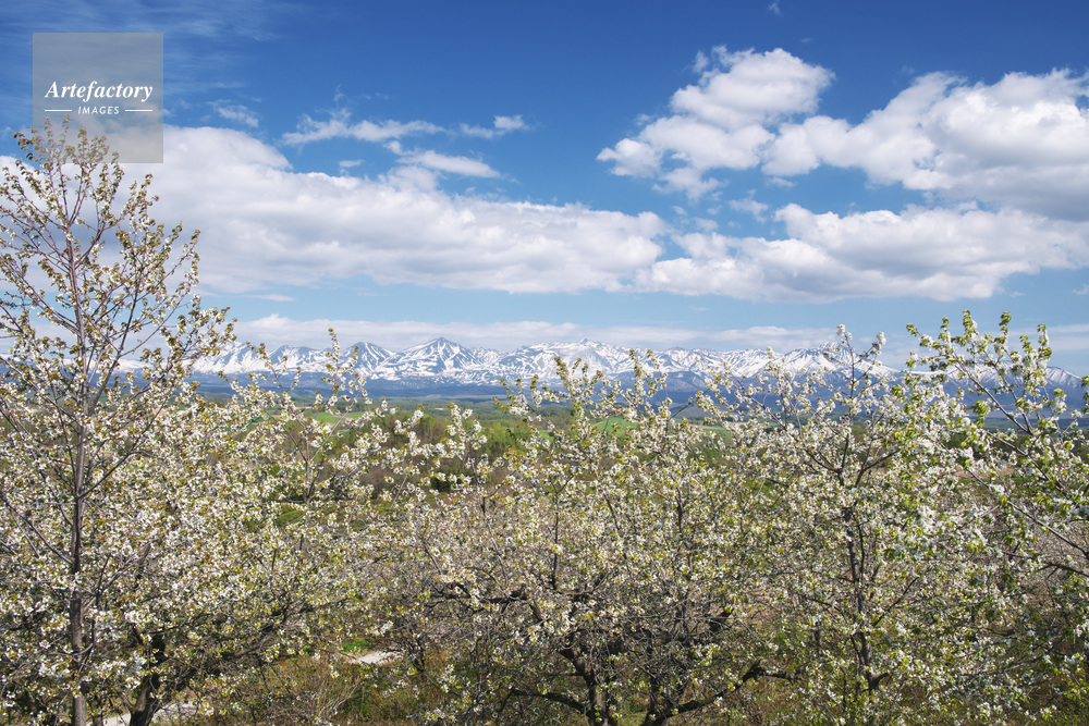 | 作品タイトル | サクランボの花と十勝岳連峰 | モデルリリース | なし | |