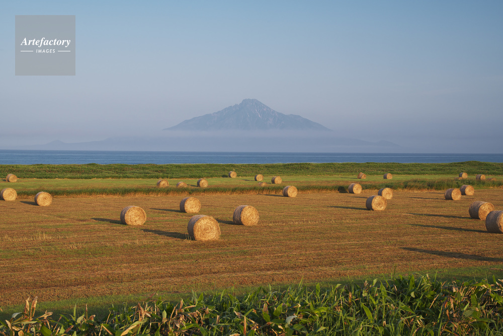 | 作品タイトル | 利尻島と牧草ロールの朝 | モデルリリース | なし | |