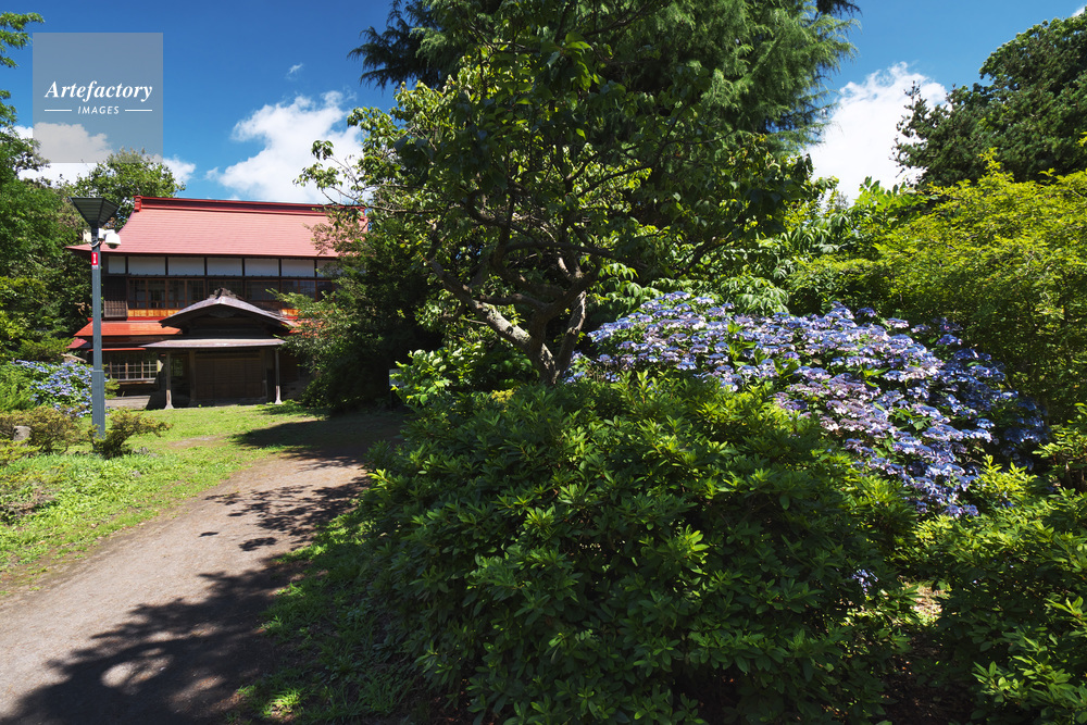 | 作品タイトル | 開拓記念館庭園の迎賓館とアジサイ | モデルリリース | なし | |