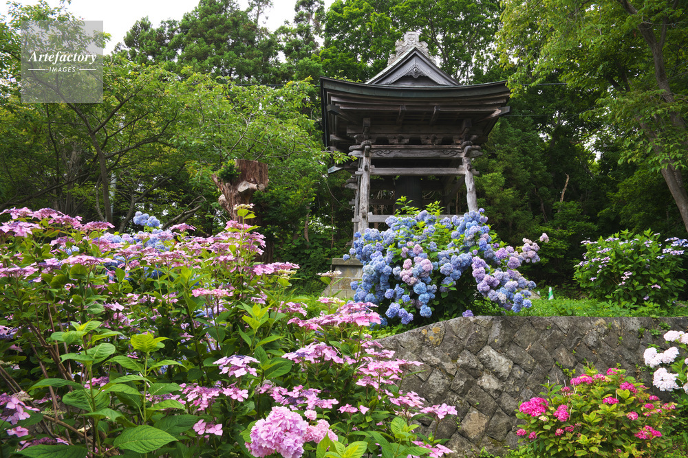 | 作品タイトル | 有珠善光寺の鐘楼とアジサイ | モデルリリース | なし | |