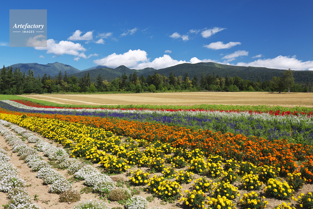 | 作品タイトル | 麓郷展望台の花畑と十勝岳連峰 | モデルリリース | なし | |