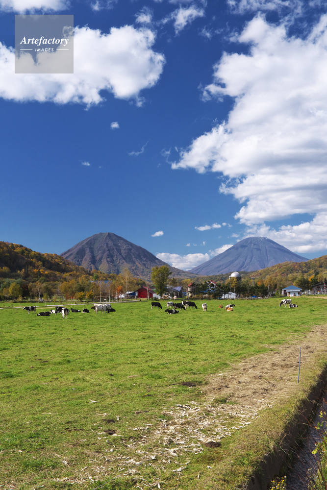 | 作品タイトル | 牛の放牧と尻別岳と羊蹄山 | モデルリリース | なし | |