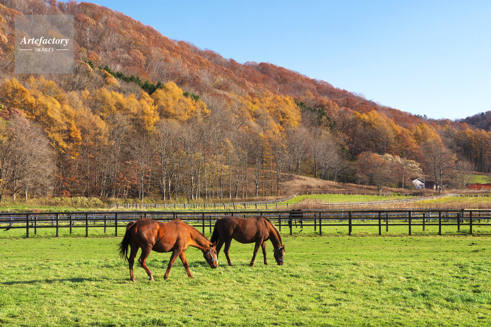 | 作品タイトル | サラブレッドの放牧と紅葉 | モデルリリース | なし | |