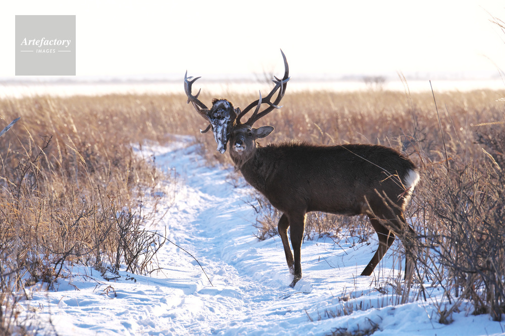 | 作品タイトル | エゾシカとツノに絡みついた死骸の頭 | モデルリリース | なし | |