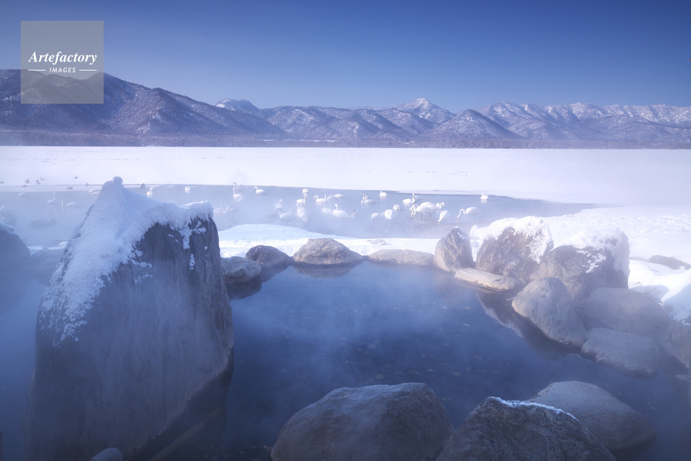 | 作品タイトル | 屈斜路湖のコタンの露天風呂と白鳥 | モデルリリース | なし | |