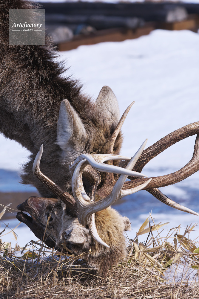 | 作品タイトル | エゾシカのツノにからみついた死骸の頭 | モデルリリース | なし | |