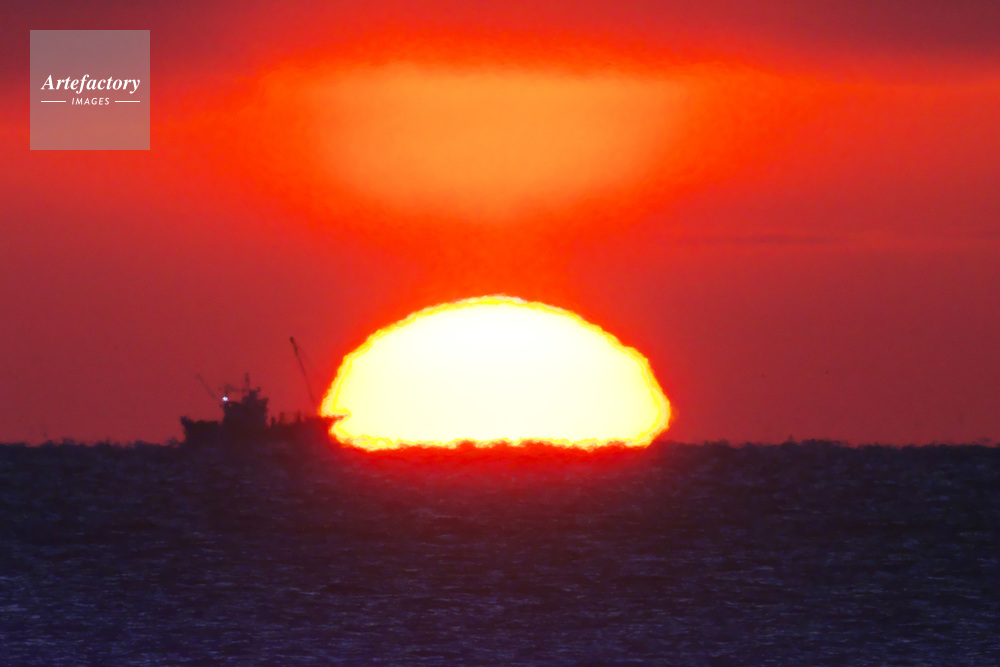 | 作品タイトル | 根室海峡の日の出とホタテ漁船 | モデルリリース | なし | |