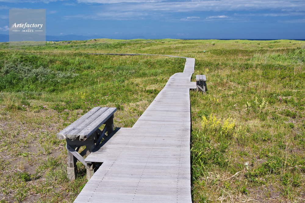 | 作品タイトル | はまなすの丘公園の木道とベンチ | モデルリリース | なし | |