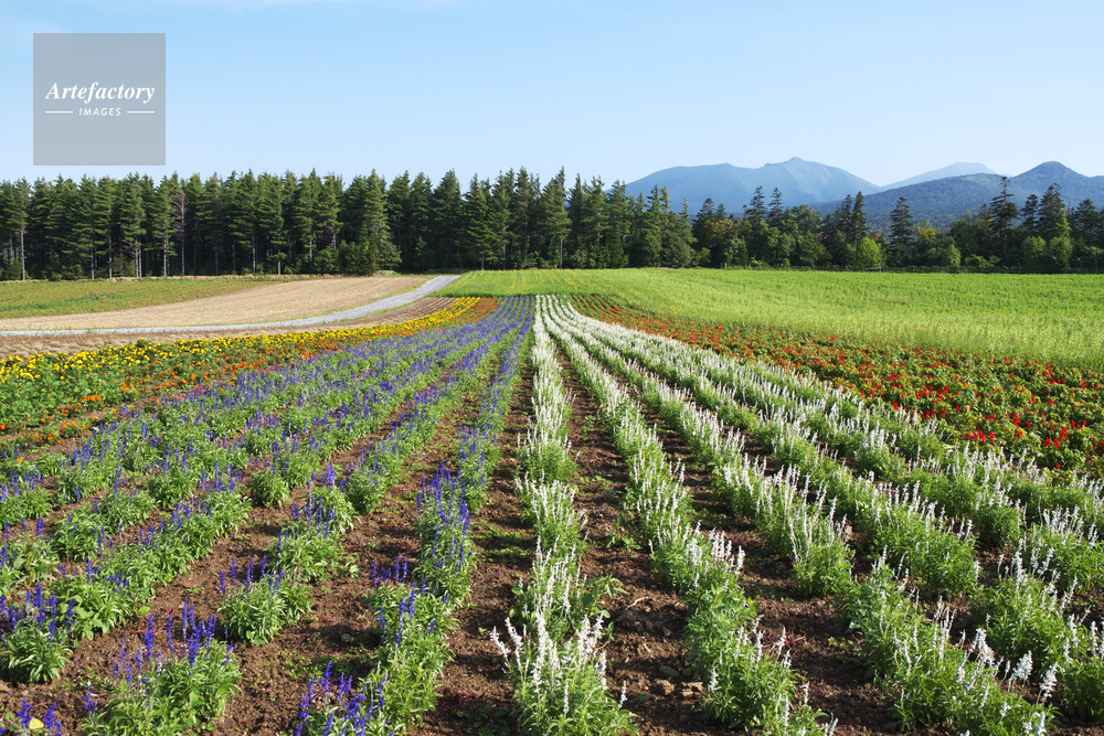 | 作品タイトル | 麓郷展望台の花畑と前富良野岳の山々 | モデルリリース | なし | |