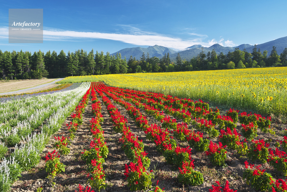 | 作品タイトル | 麓郷展望台の花畑と前富良野岳などの山々 | モデルリリース | なし | |