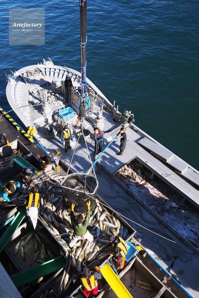 | 作品タイトル | ウトロ漁港のサケの水揚げ作業 | モデルリリース | なし | |