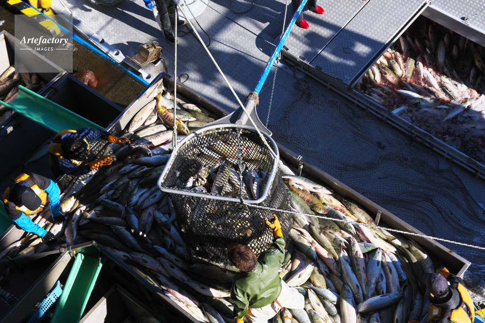 | 作品タイトル | ウトロ漁港のサケの水揚げ作業 | モデルリリース | なし | |