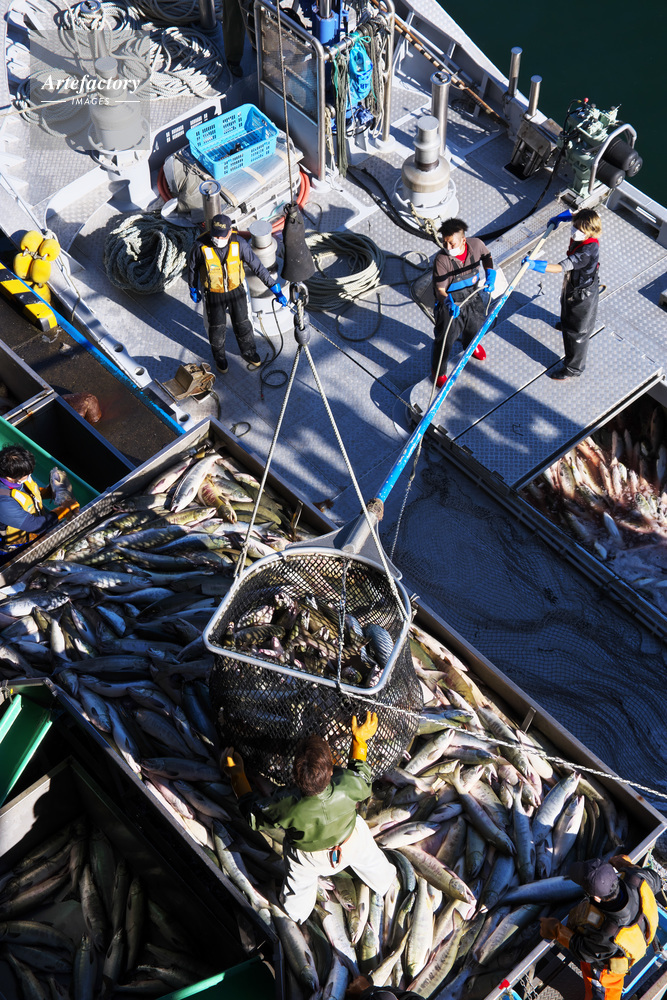| 作品タイトル | ウトロ漁港のサケの水揚げ作業 | モデルリリース | なし | |