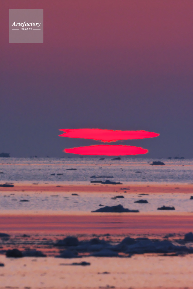 | 作品タイトル | 根室湾の日の出(二つの太陽)と流氷 | モデルリリース | なし | |
