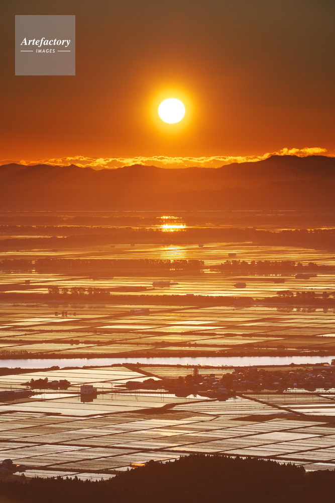 | 作品タイトル | 八郎潟の水田地帯の日の出 | モデルリリース | なし | |
