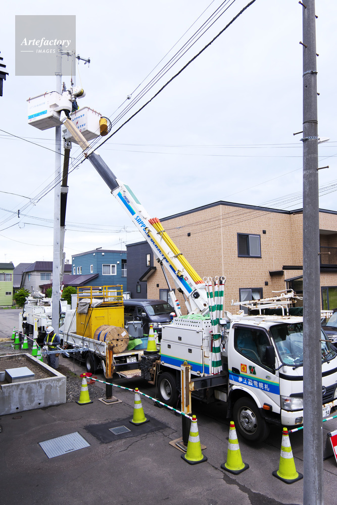 | 作品タイトル | 配電線工事と高所作業車 | モデルリリース | なし | |