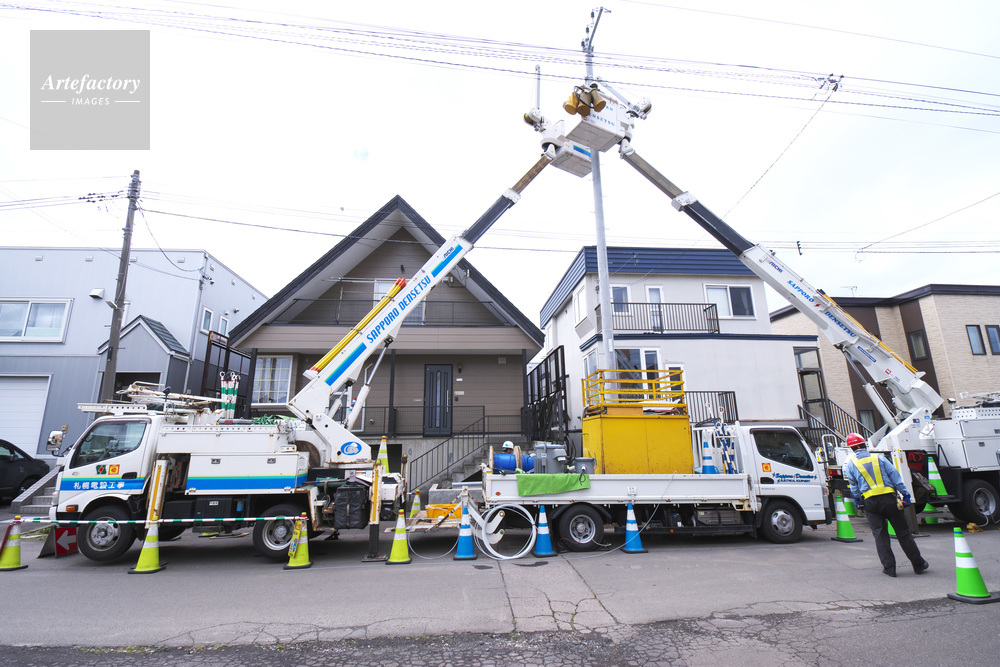 | 作品タイトル | 配電線工事と高所作業車 | モデルリリース | なし | |
