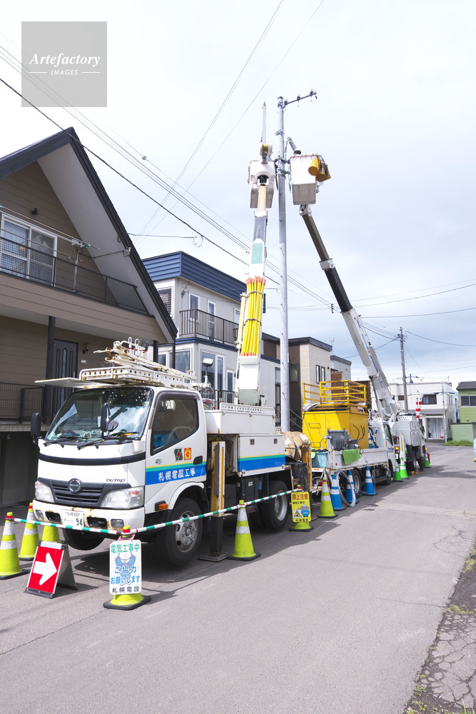 | 作品タイトル | 配電線工事と高所作業車 | モデルリリース | なし | |