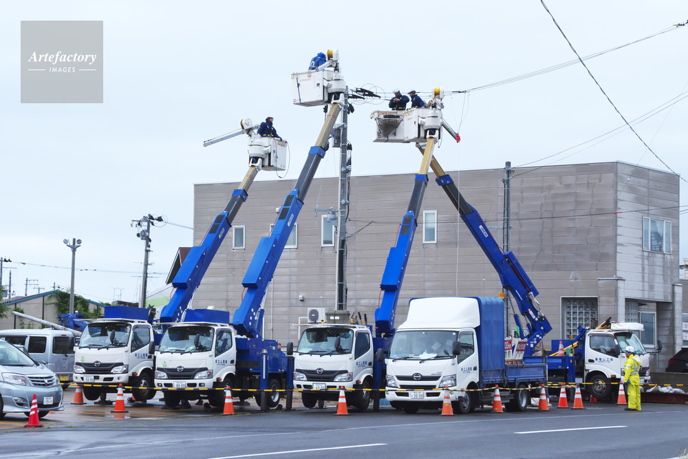 | 作品タイトル | 配電線工事と高所作業車 | モデルリリース | なし | |